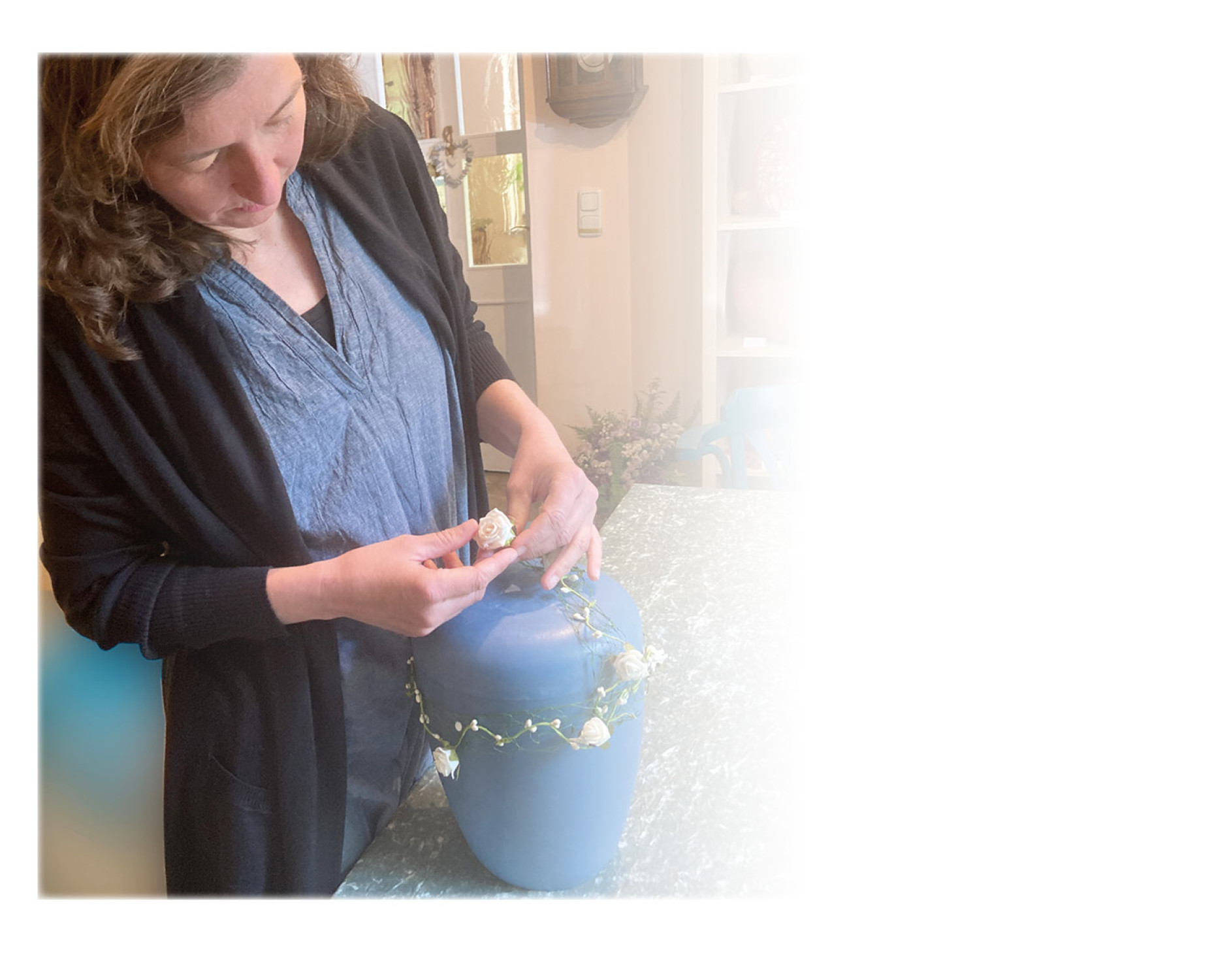 Heute arbeite ich außerdem als Bestatterin, Trauerbegleiterin und Rednerin und halte und bewahre sehr gerne das, was Lebensgeschichten – und das Leben selbst – uns mitgeben wollen.